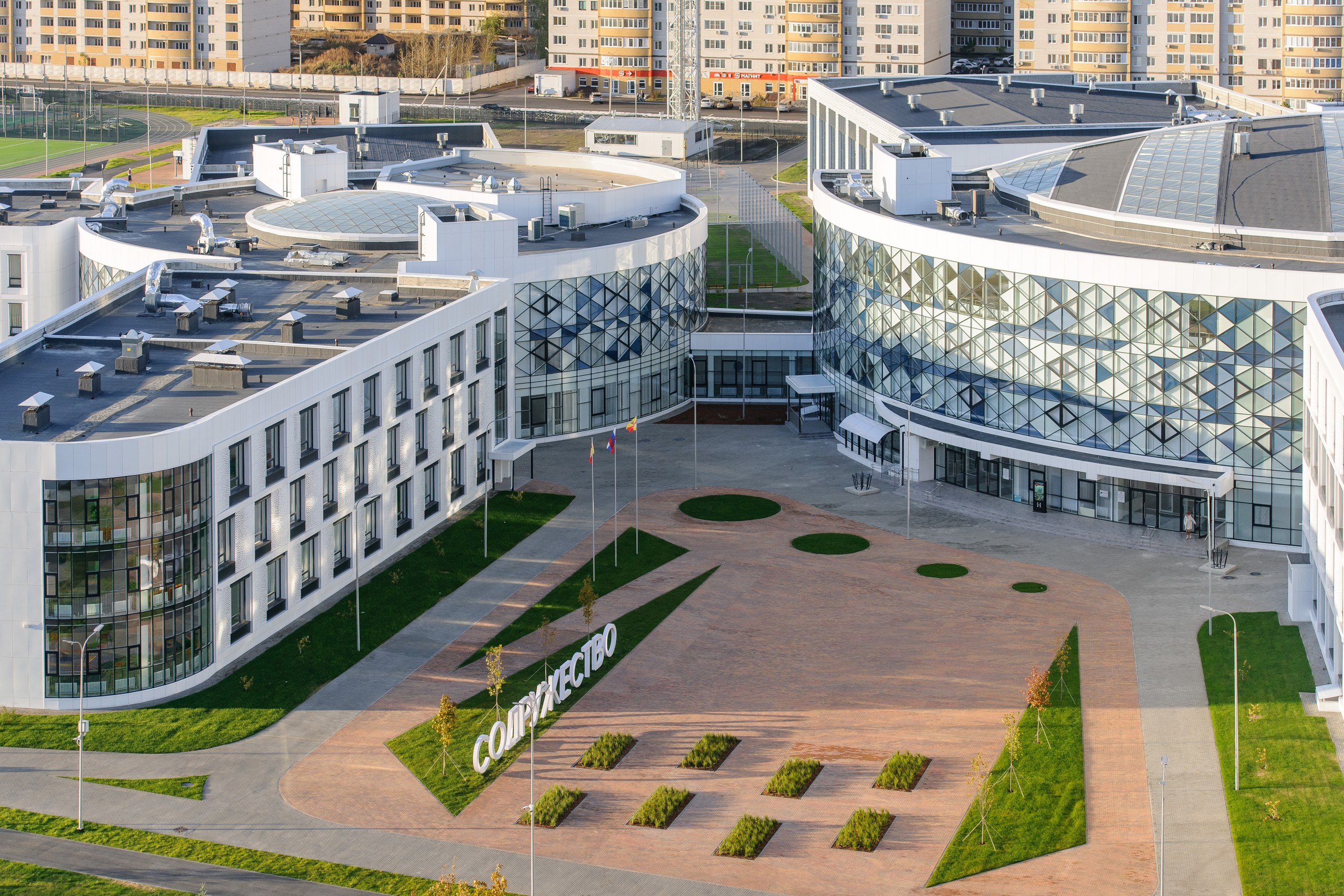 1 сентября 2023 года в Воронеже открылась самая большая школа страны на 2860 учащихся. В одну смену идет учебный процесс сразу в 110 классах! Школа, выполненная в космической тематике, уже стала арт-объектом, достопримечательностью региона. В основе концепции - орбитальная станция: с отсеками, пищеблоками, космическим атриумом, ячеистыми фасадами.