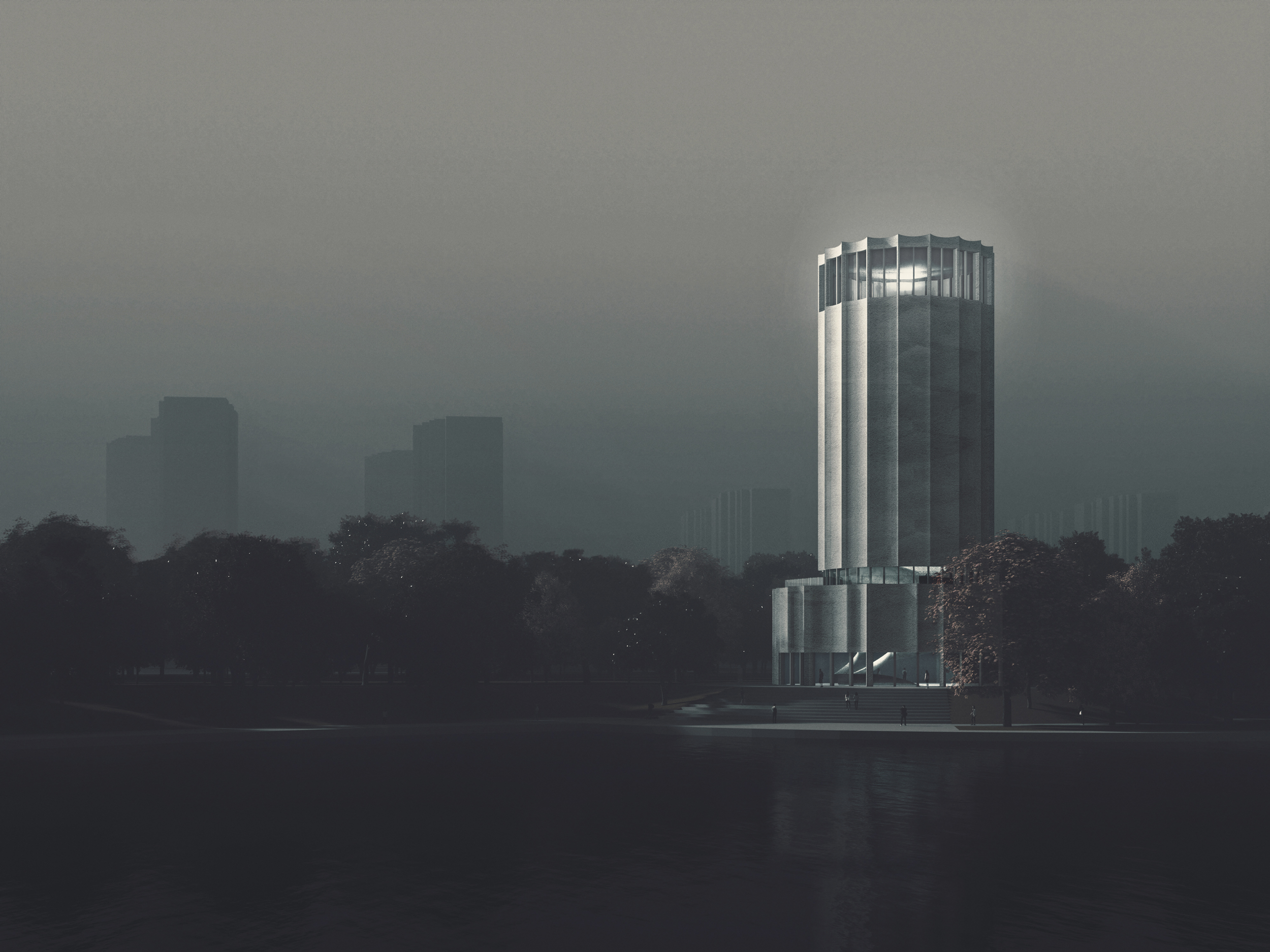 Задача авторов заключалась в переосмыслении градирни и трансформации этого памятника индустриальной эпохи в символ коллективной памяти и культуры. Благодаря использованию экологически чистых материалов и технологий удалось сохранить историческую сущность сооружения, а монохромная отделка интерьера и игра света и теней пленяют воображение, унося посетителей в мир фантазий.