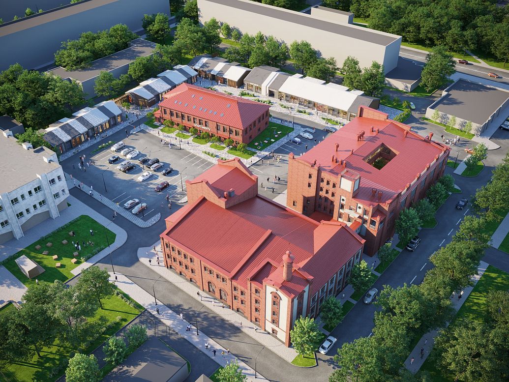 О проекте: Проект-концепция реконструкции корпусов пивоваренного завода А.Ю. Суркова предполагает строительство в тех же пространственных объемах обновлённых объектов под общественно-торговую функцию.