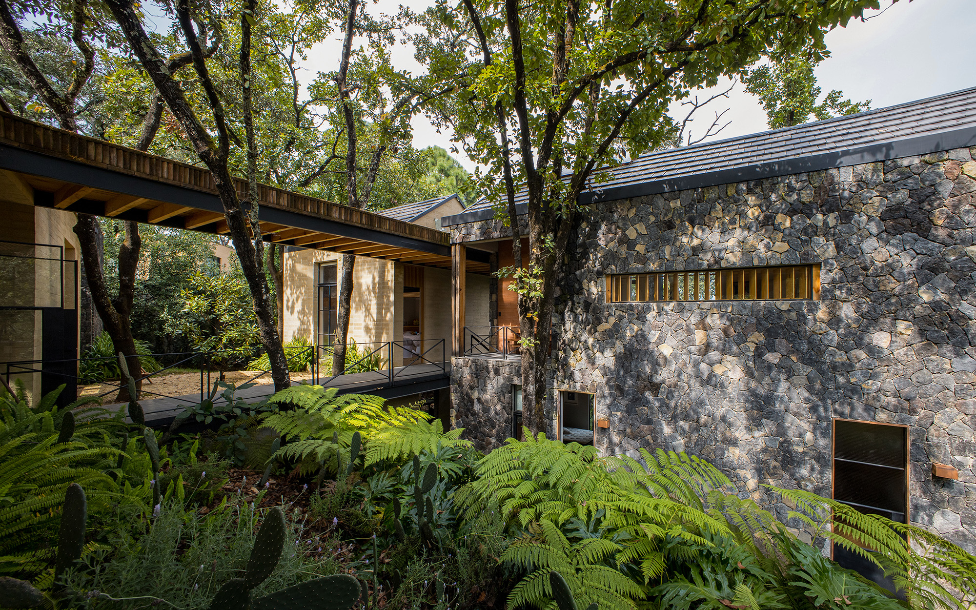 В Г-образной части дома есть все необходимое для комфортной жизни, а во втором объеме расположены гостевые помещения.