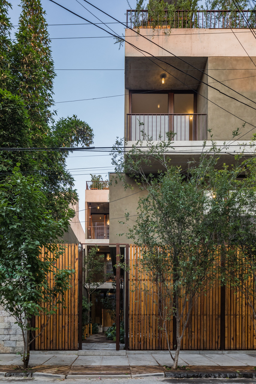 О проекте: TAXCO 25 – современный жилой комплекс в районе Рома-Сур в столице Мексики. Проект включал в себя строительство четырех корпусов, обустройство террас, эксплуатируемых кровлей и озеленение узкого пространства между улицей и домами.