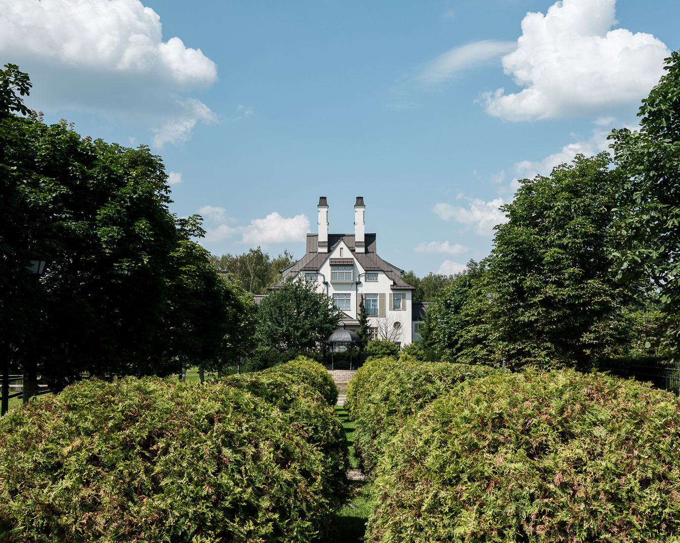 Активная вертикаль каминных труб стала композиционным центром и узнаваемым ориентиром подмосковного посёлка.