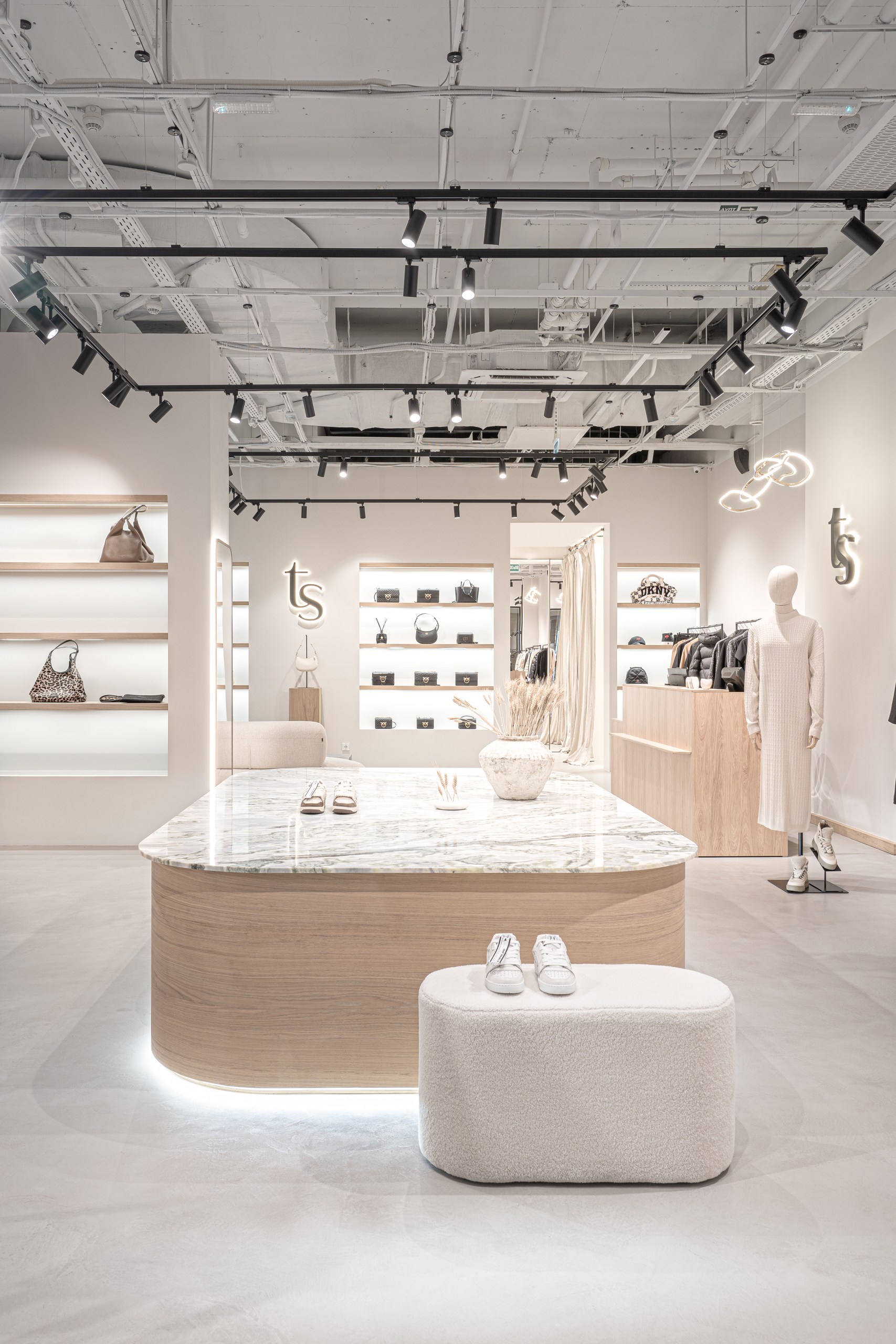 Название магазина "Trendsettica" сразу определило характер и атмосферу интерьера. В основу проекта легли трендовые акценты - натуральные материалы, плавные формы и природные оттенки. Освещение, воплощенное в жизнь агентством King David, позволяет модницам видеть в зеркале только комплиментарное отражение.
