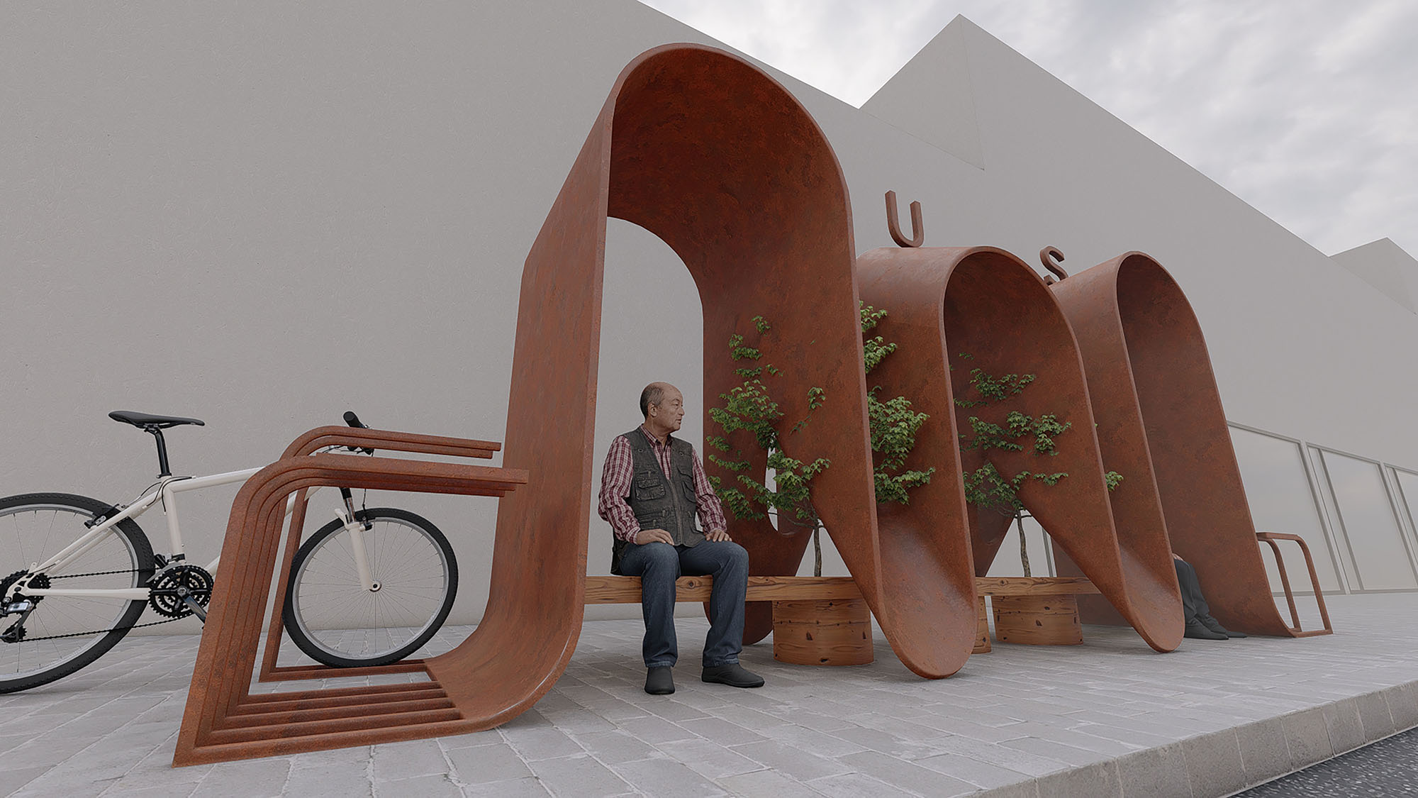 Автору очень нравятся многопролетные мосты Си-о-се-поль и Хаджу в Исфахане, поэтому он спроектировал остановку, которая воспроизводит их ритмический рисунок в более современном стиле.