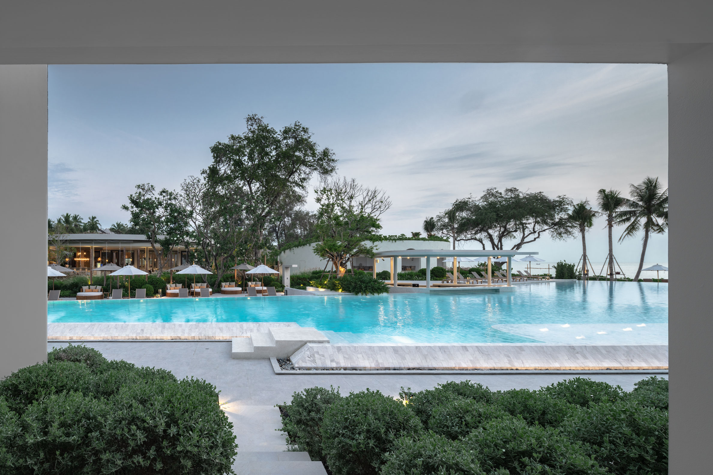 О проекте: Работая над проектом, его авторы принимали во внимание два момента: во-первых, приверженность отеля философии устойчивого развития, а во-вторых, значительное количество взрослых деревьев на участке. Их было решено сохранить и гармонично вписать в новый ландшафт, для чего каждое дерево было пронумеровано и обозначено на всех рабочих чертежах.