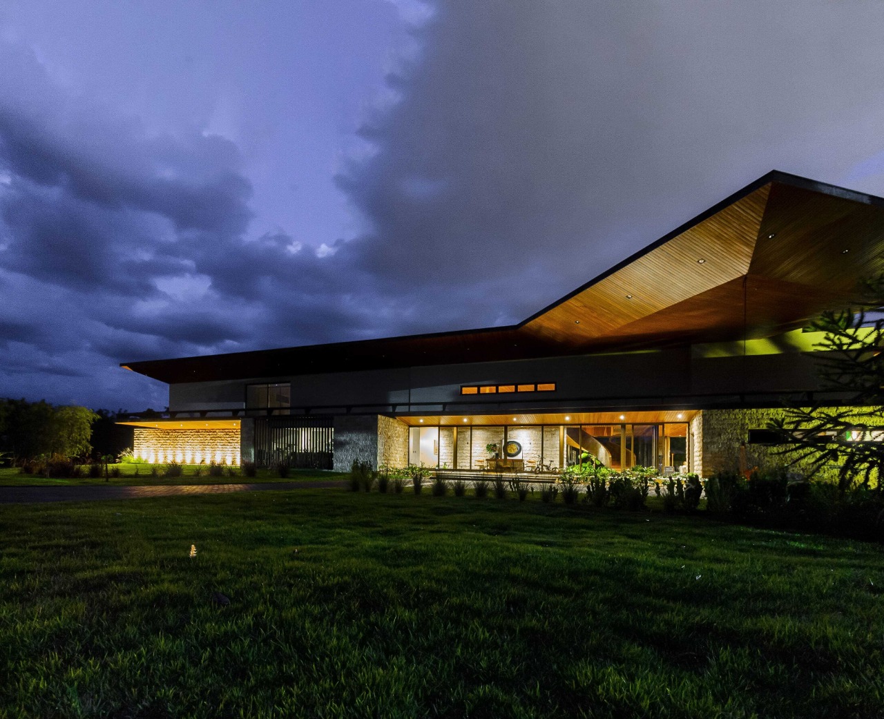 О проекте: Вилла построена в пригороде г. Дорадос на участке площадью около 3000 м2. Здание бережно вписано в существующий ландшафт, а сами конструкции очень просты: два перекрытия уложены на стальные колонны, установленные через равные промежутки около 6 метров и проходящие через весь объем до самой кровли.