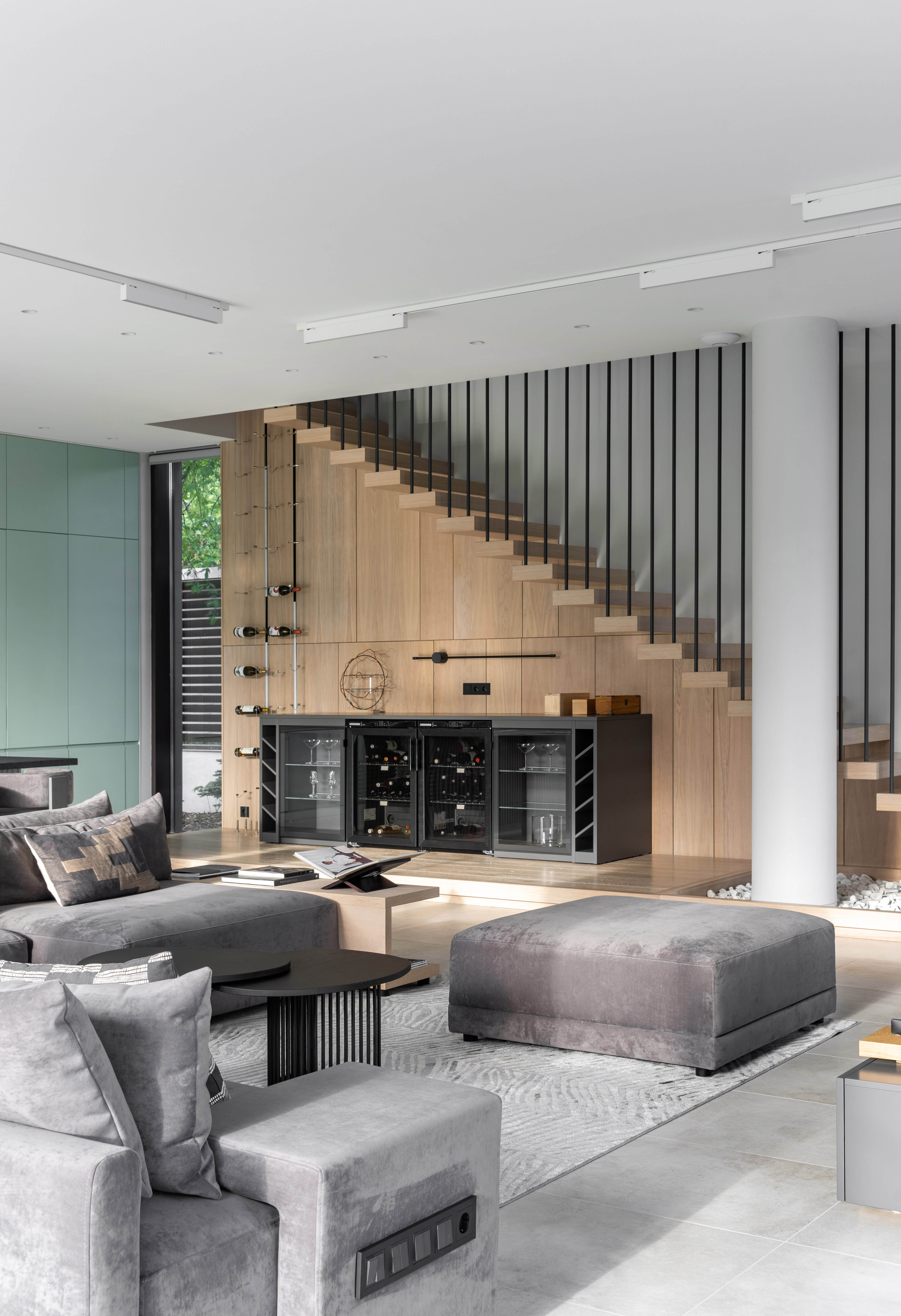 Так получилось, что заказчик обратился к Марии и Анастасии за дизайном, когда архитектурный проект дома был уже согласован, поэтому дизайнерам предстояло воплощать свои замыслы с учетом созданной ранее современной архитектуры в минималистичном стиле. «Мы стремились стереть границы между уличным и внутридомовым пространством, достичь визуального единства экстерьера и интерьера, — отмечают дизайнеры. - Мы хорошо осознавали привлекательность окружающего ландшафта, поэтому открывали виды на зелень и водную гладь, создавая акценты на открывающиеся из панорамных окон пейзажи».