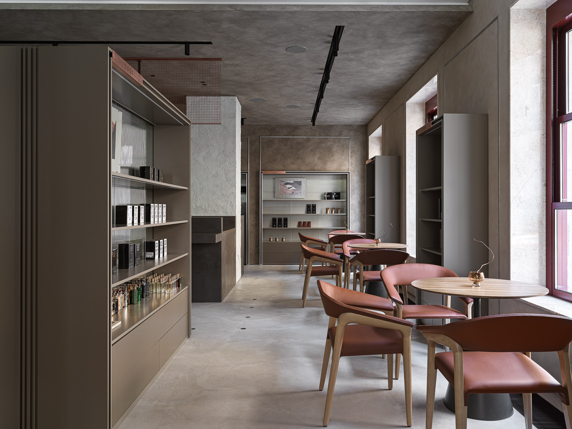 Бьюти квартира состоит из трех зон. Магазин косметики, салон красоты и шоколатерия. Интерьер каждой зоны индивидуален, но все пространство объединено единой концепцией. Интерьер в лаконичном стиле, со спокойной цветовой гаммой и дорогими отделочными материалами.