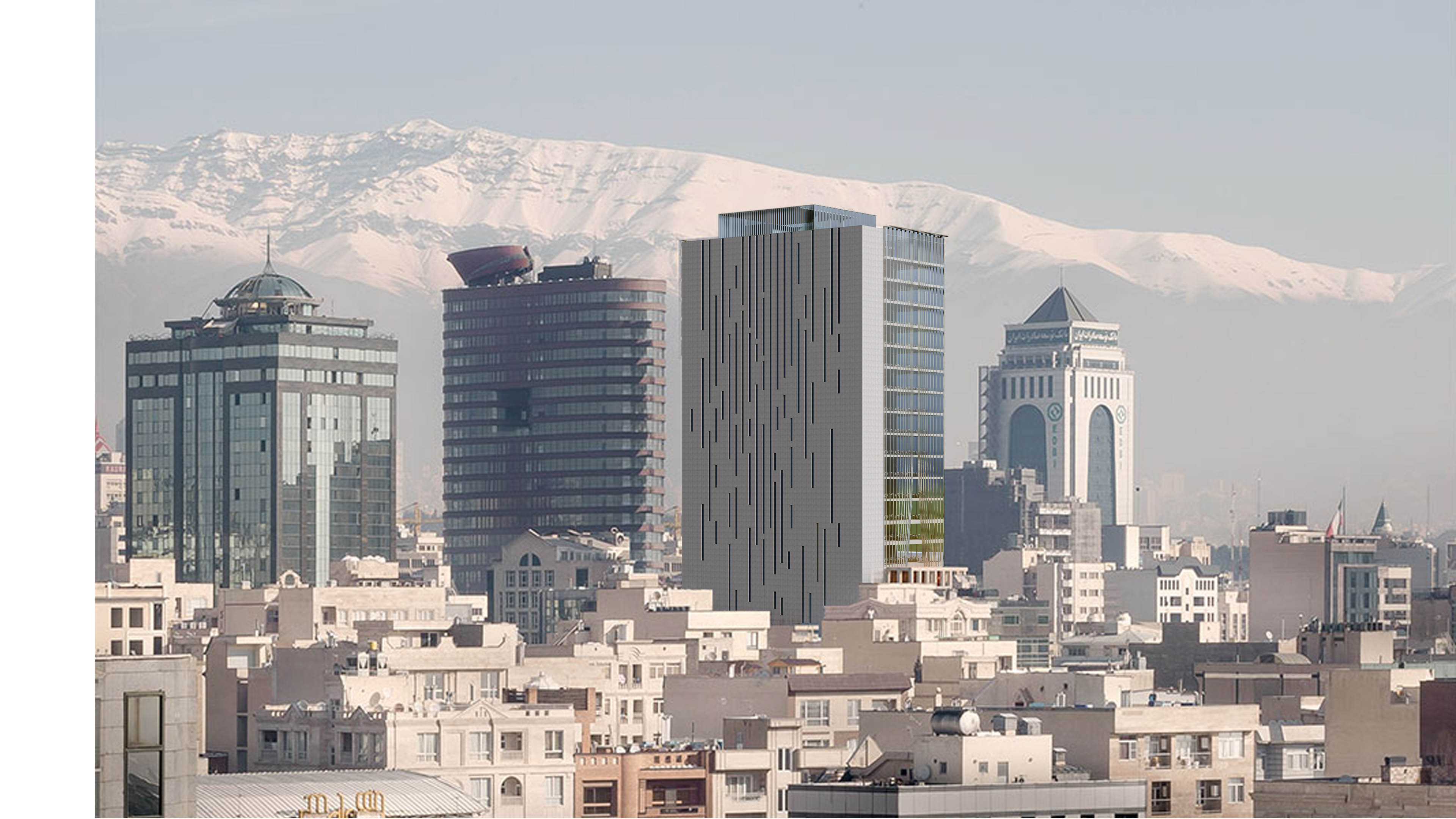 Перепроектирование формы и фасада этого здания было выполнено на существующем каркасе и вдохновлено башней Азади (Шахьяд) как символом Тегерана. Большая площадь остекления для достаточного естественного освещения офисных помещений, внимание к климатическим факторам, разнообразие планировок стали основополагающей концепцией при проектировании интерьеров и отделки.
