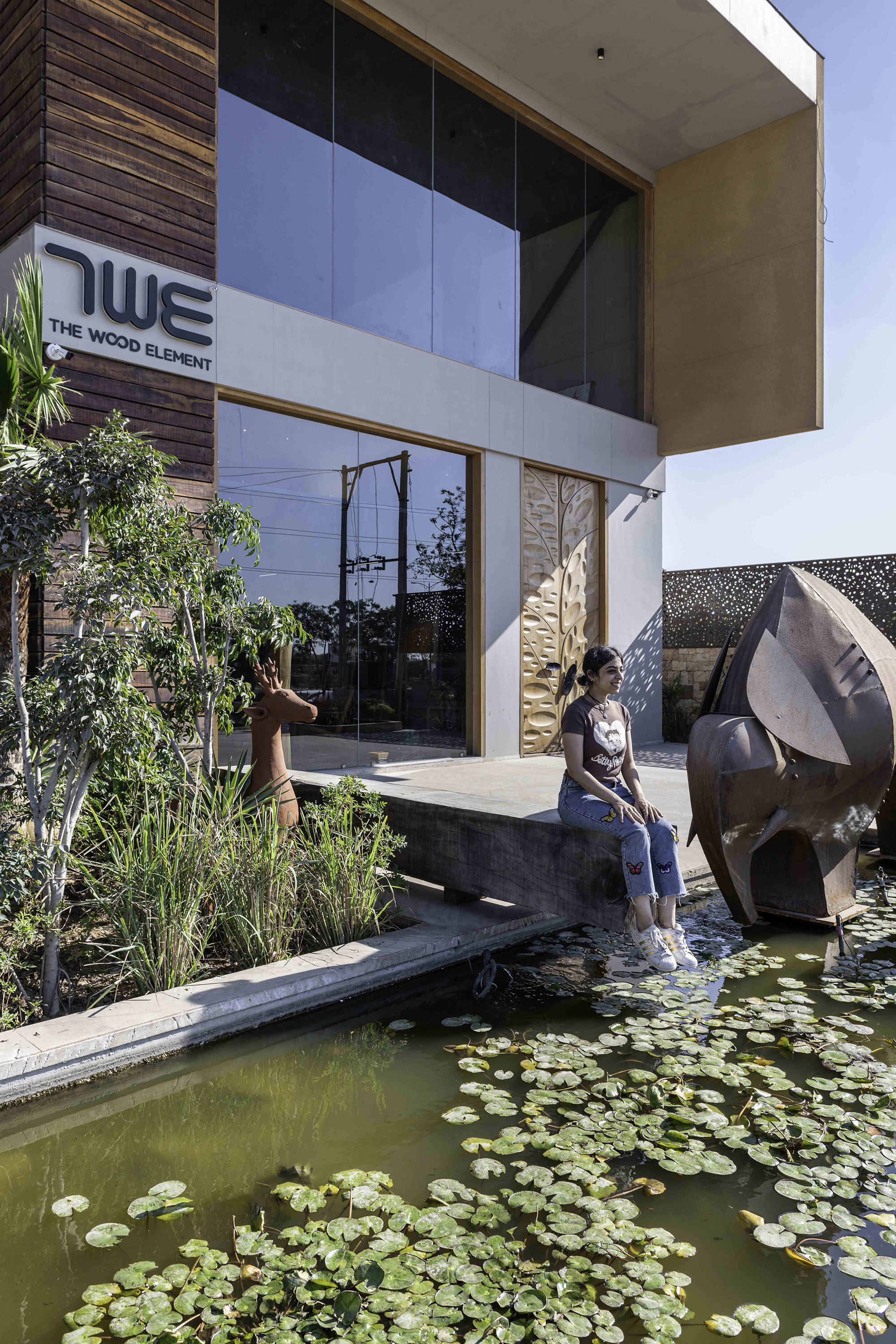 Проект магазина по продаже деревянных украшений и дизайнерских ковров разработан в соответствии с принципами биофильной архитектуры, с учетом минимизации углеродного следа и повышения энергоэффективности здания. На юго-восточном фасаде установлен солнцезащитный экран из песчаника, который создает приятную тень на основной части открытого пространства. Зеленые насаждения способствуют уменьшению выброса CO2 и производят кислород. Также проектом предусмотрены специальные места для общения, где посетители смогут поговорить с продавцом или друг с другом.