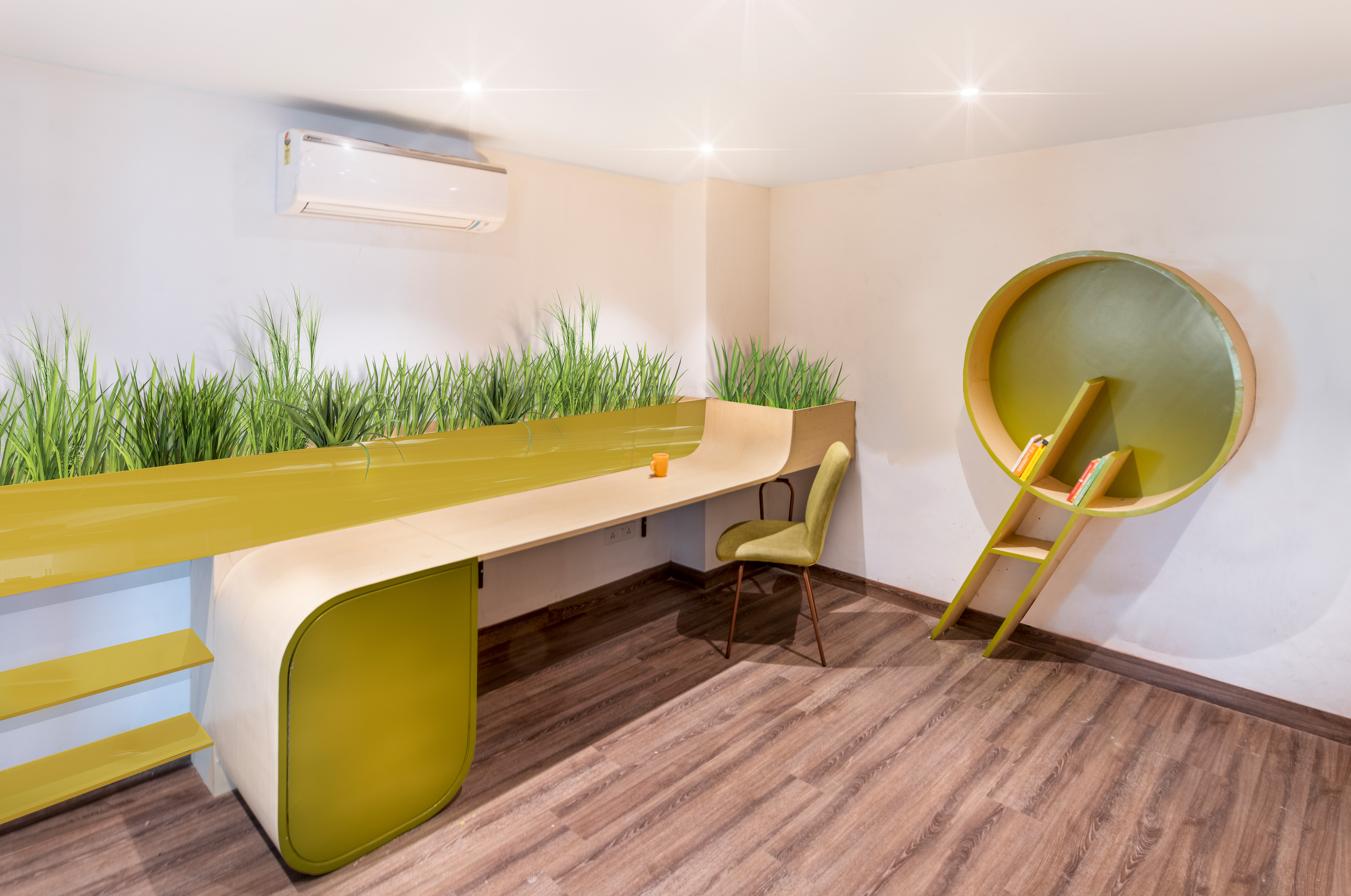 Опроекте: Заказчик пожаловался дизайнерам, что в его существующем коворкинге как-то скучновато. Ему хотелось добавить в интерьер ярких красок, энергичных линий и, в целом, оживить атмосферу. При этом необходимо было обеспечить посетителям пространства комфорт, приватность и рабочий настрой. Коворкинг должен был стать местом, способным укрепить командный дух. Но и это еще не все – владельцу пространства хотелось, чтобы оно как-то выделялось среди других аналогичных мест, которых в Нойде ой как много.