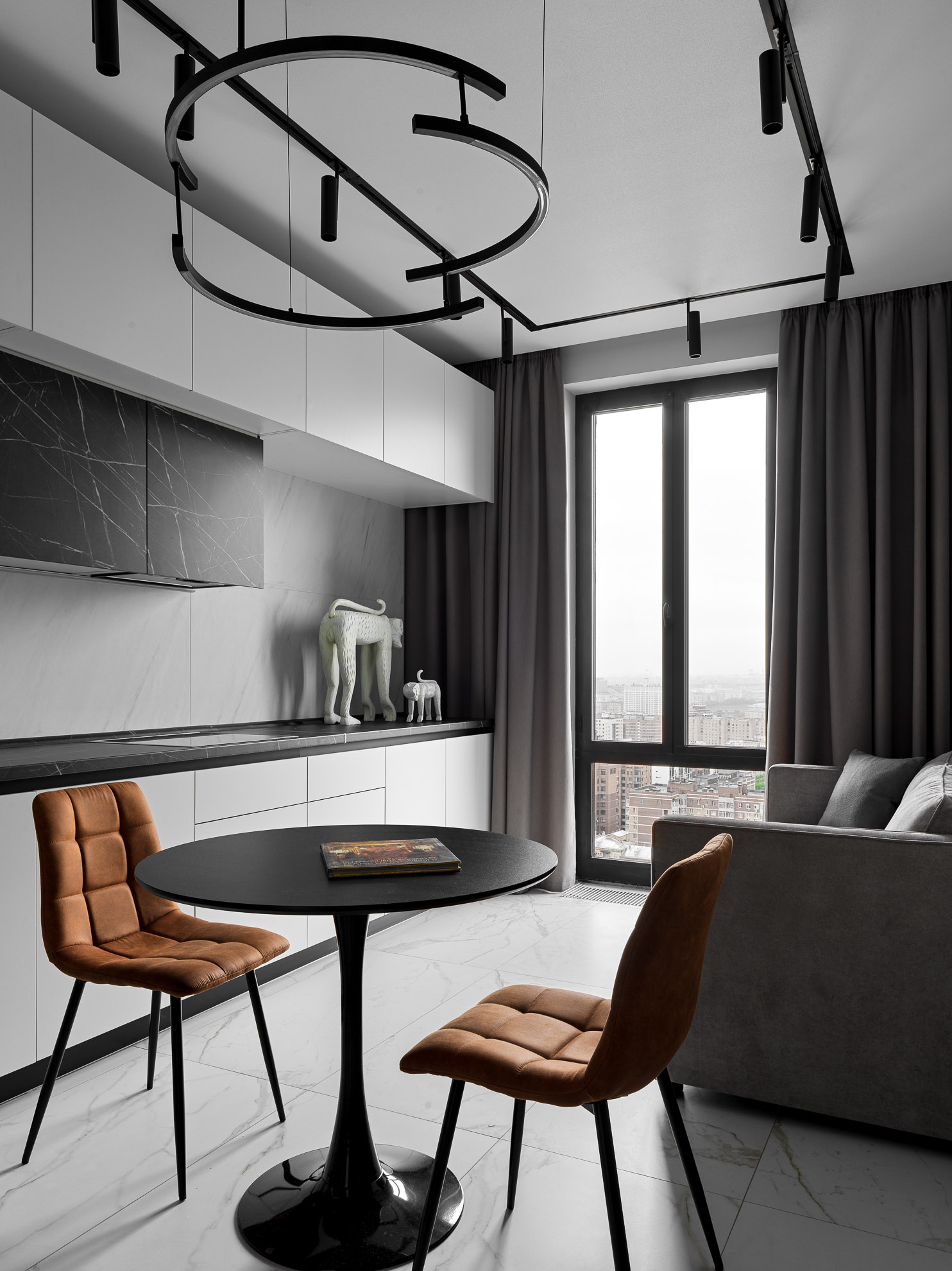 Две одинаковых квартиры оформлены по принципам китайского учения о единстве и борьбе противоположностей: мужское и женское, YIN & YANG — как две половинки одного целого. Квартира YANG из этого проекта — это истинное воплощение мужской энергии, предстающей перед нами через монохром с контрастными акцентами. В этом пространстве каждая деталь передает четкость и силу. Ведь здесь каждый элемент является инструментом для выражения ярких черт мужественности.
