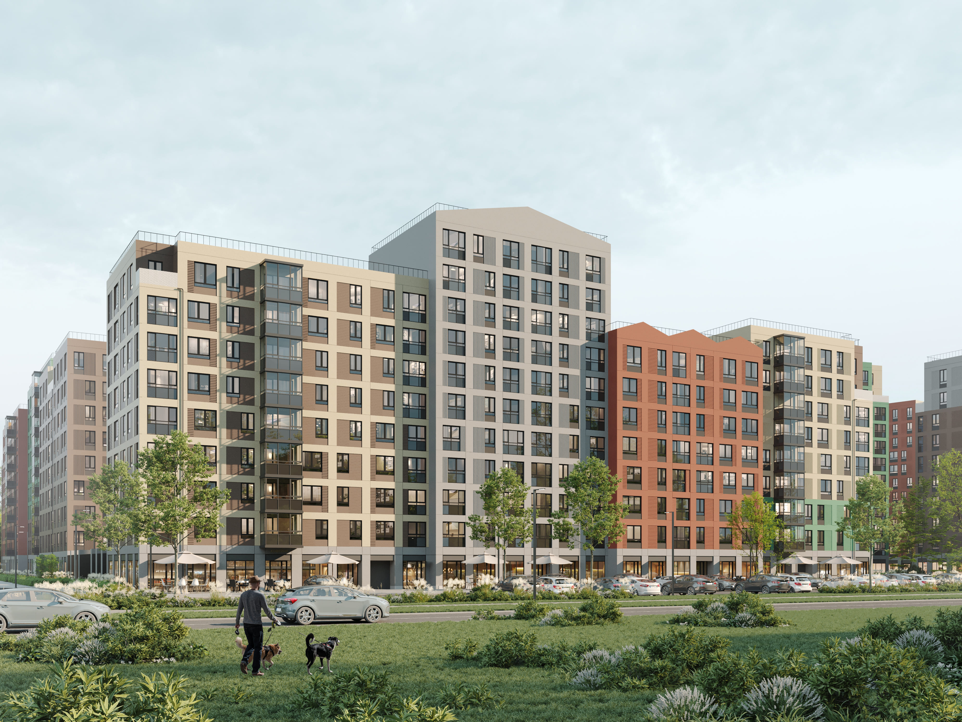 Прототипом фасадов жилого комплекса послужили скандинавские виллы, которые отличаются минималистичными орнаментами, фактурой стен и разнообразием цветовых решений в спокойных оттенках. Тем самым создана атмосфера небольшого европейского городка, где проходит в размеренном темпе жизнь вдали от городской суеты.