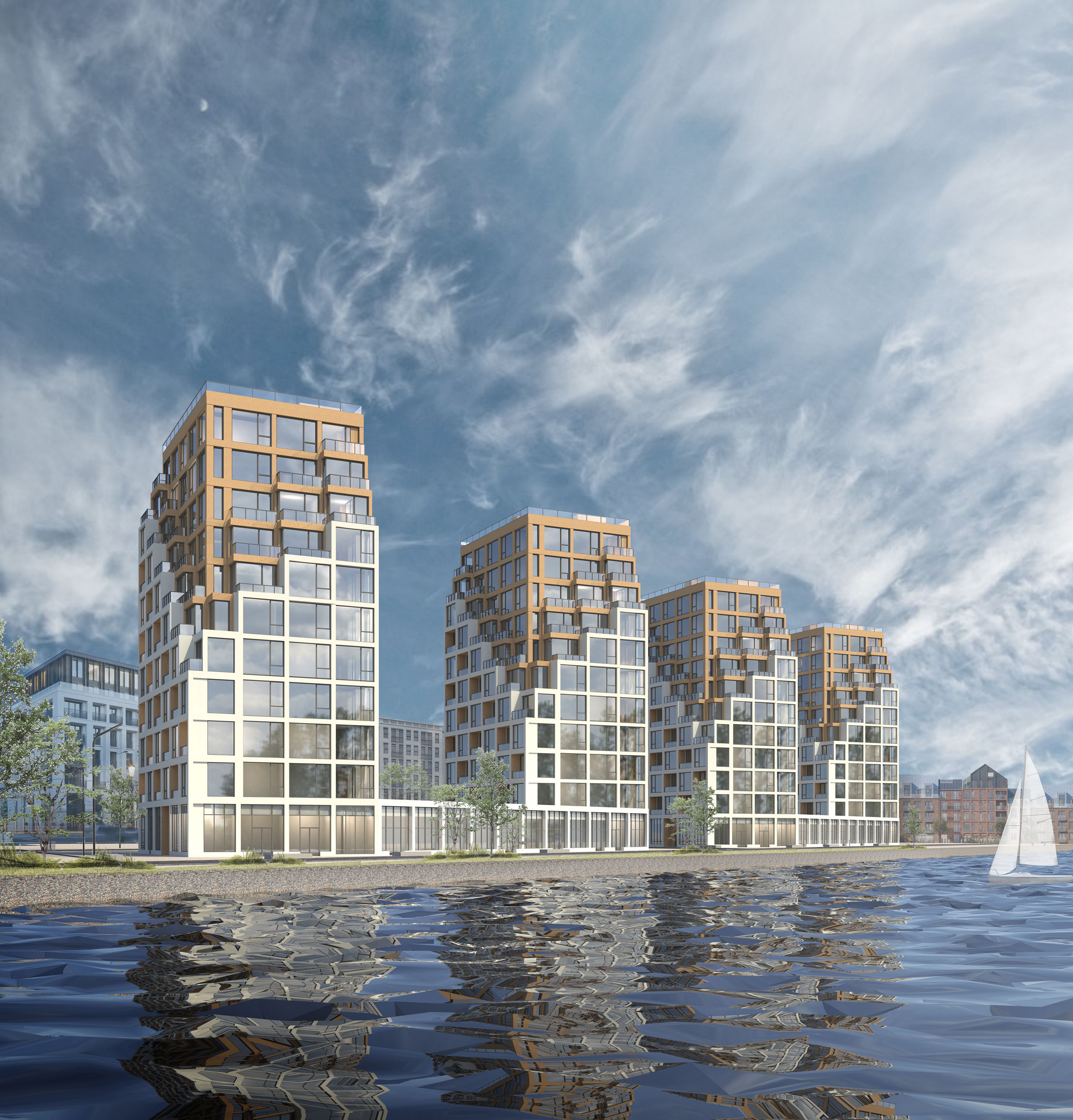 О проекте: Жилой комплекс расположен в проектируемом квартале вдоль Галерной гавани. Здания располагаются по диагонали относительно набережной, повторяя форму существующего жилого дома на прилегающем участке.