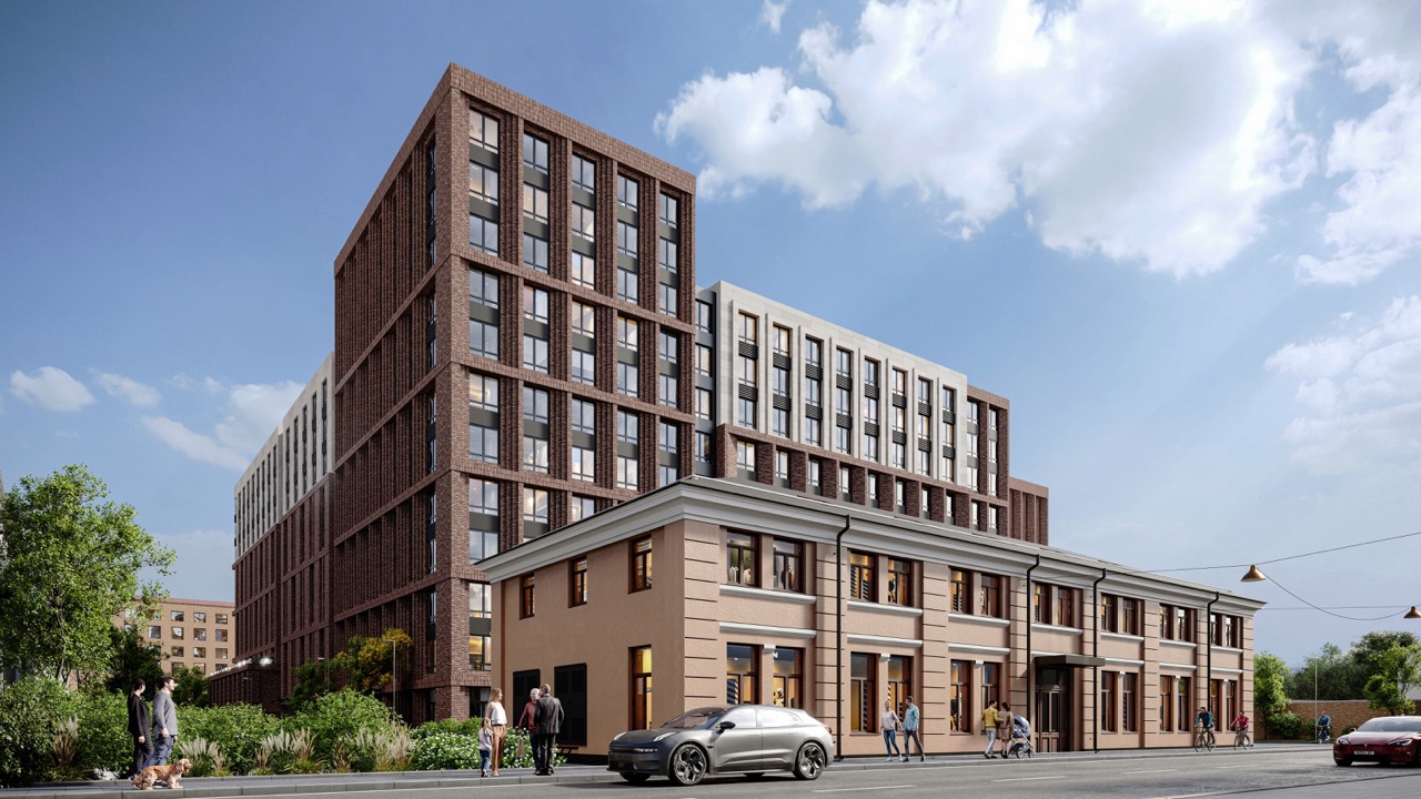 Лаконичные решения, выверенная геометрия и благородная цветовая палитра гармонично встроили комплекс в историческую ткань района. Кирпичные фасады, индустриальные акценты в дизайне — медные элементы светильников в лобби, оформление лифтовых холлов — усиливают ощущение подлинности и глубины контекста. Разнообразие материалов создаёт декоративную игру фактур и оттенков.