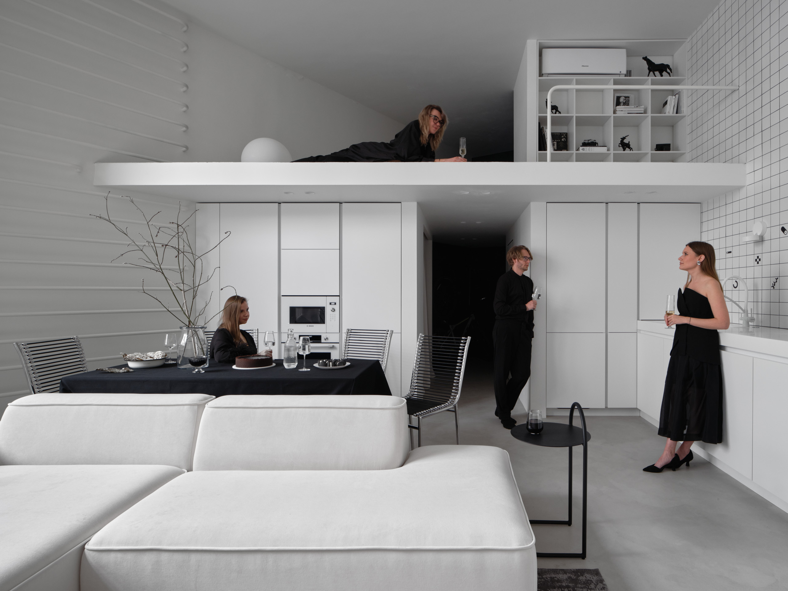 Пространство – роскошь. Воздух и свободный объем ценны для нас. Мы нашли баланс, при котором сохранили ощущение пустоты и сделали интерьер функциональным.