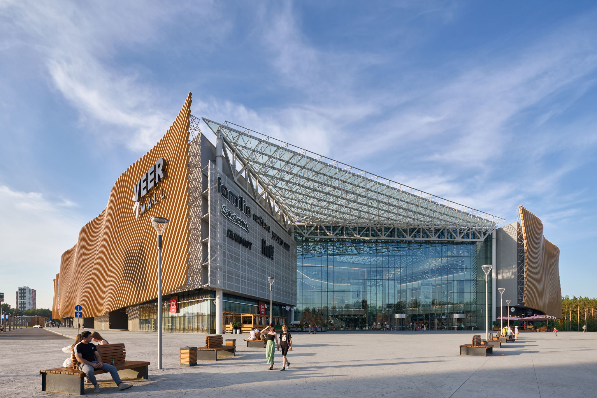 About the project The facility has some unique structural elements that make it an art object. It comprises three basic blocks connected with pedestrian galleries, topped with skylights. The sophisticatedly shaped glass roofing covers all the galleries and includes three atriums. The aperture of the main atrium within this no-support glass structure is 63 by 34 meters. The highlight of the building is the peculiar structural solutions designed for the decorative facade. Lamels of 27 m long installed at the angle of 30 degrees make the facade look like waves, and the play of light and shadow throughout the day makes the exterior even more stunning.