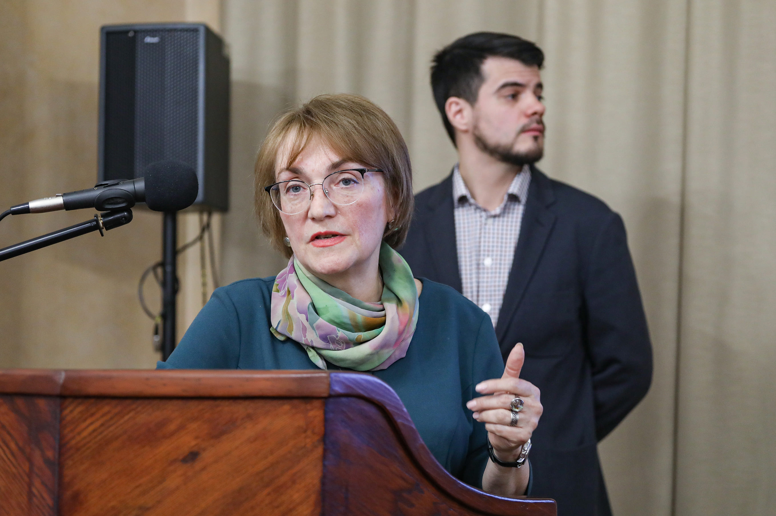 Директор Государственной специальной центральной библиотеки для слепых и слабовидящих (лауреат Золотого диплома премии «Золотой Трезини-2022») Ольга Устинова и главный архитектор проектов «Архитектурной мастерской Мамошина» Арсений Мамошин рассказали об отражении стратегии развития специальной библиотеки в дизайн-проекте библиотечного пространства. Докладчики обобщили колоссальный опыт, полученный при создании инклюзивного культурного и информационно-библиотечного пространства в историческом петербургском здании, где расположена библиотека для слепых и слабовидящих.