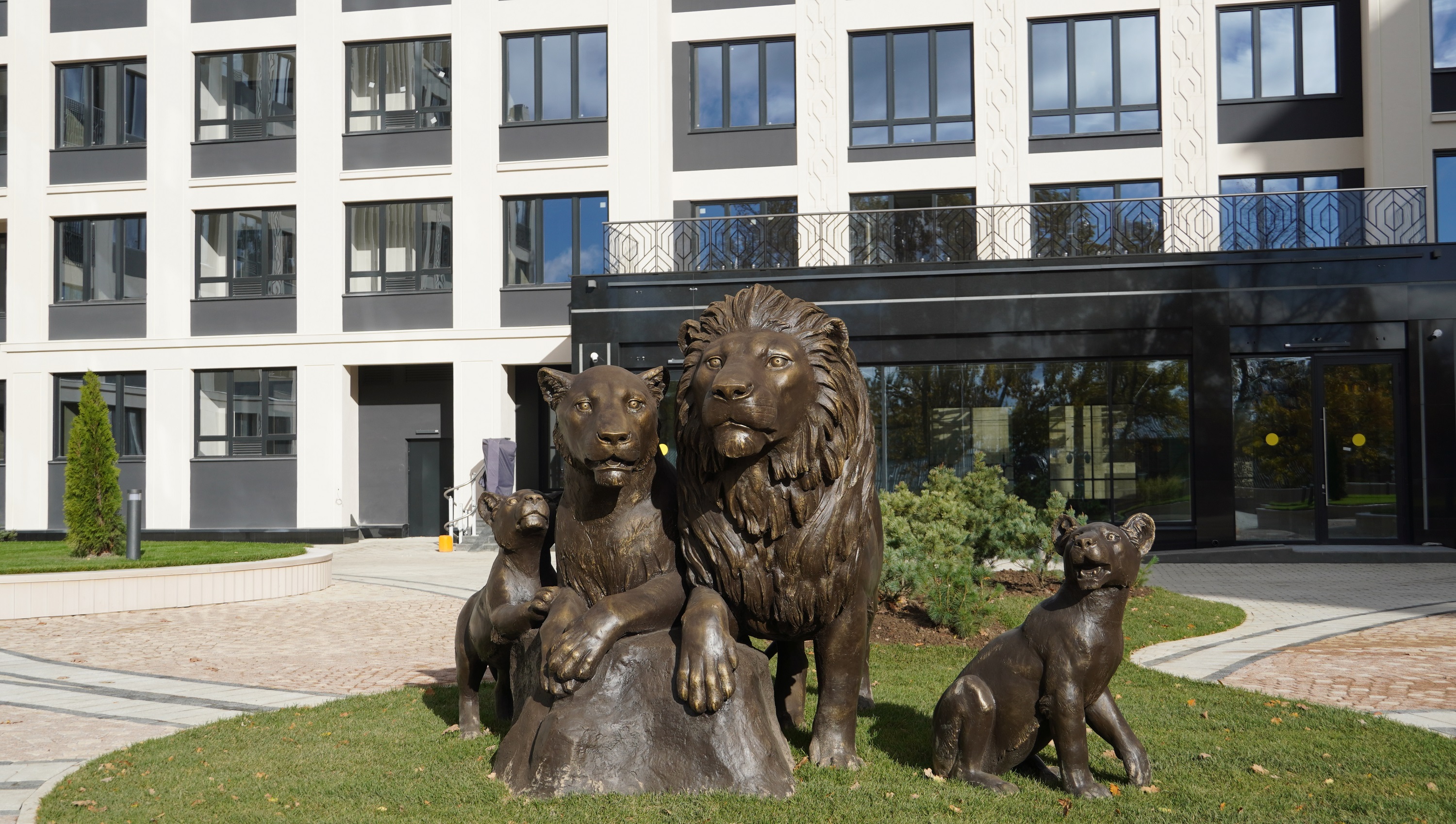 Скульптурная группа состоит из фигур льва, львицы и двух маленьких львят. Высота скульптуры — 3 метра, она выполнена из современного вандалостойкого пластика с имитацией бронзы. Скульптура символизирует силу, благородство, высокий статус и крепкие семейные связи.