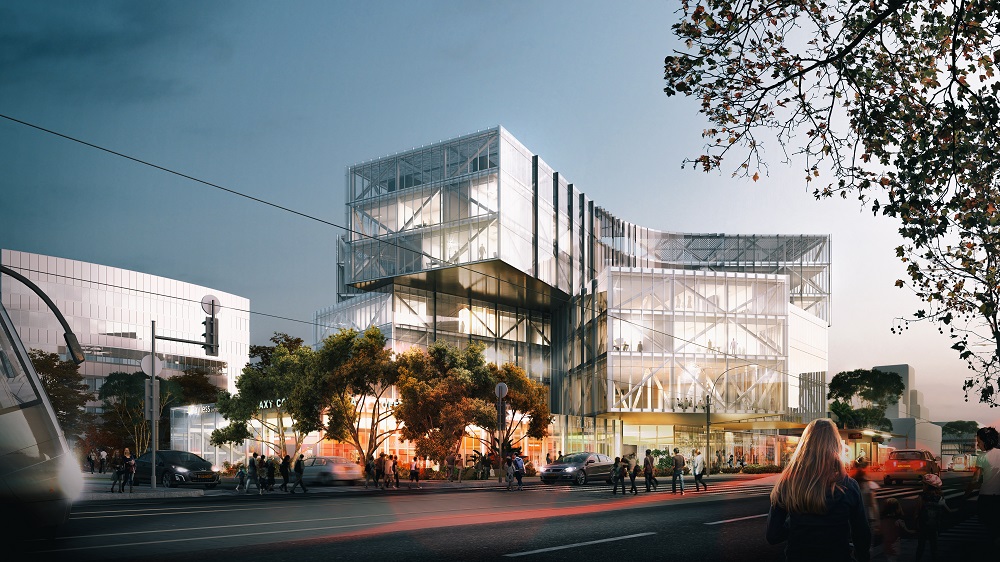 Путь к остановкам проходит мимо магазина, что обеспечит застройщику дополнительную прибыль. Комплекс проектируется на перекрестке главных улиц, соединяющих старый и новый районы города. Авторы позаботились обо всех типах пользователей: о пассажирах автобусов, узкоколейного и железнодорожного транспорта, такси, а также водителях автомобилей и велосипедистах. Масштабный прямоугольный объем разбивается на меньшие объемы, образующие площади, городские пространства и фасады магазинов, обращенные к огибающим комплекс улицам. Вокруг здания предусмотрены общественные пространства, которыми смогут пользоваться как посетители комплекса, так и просто прохожие.